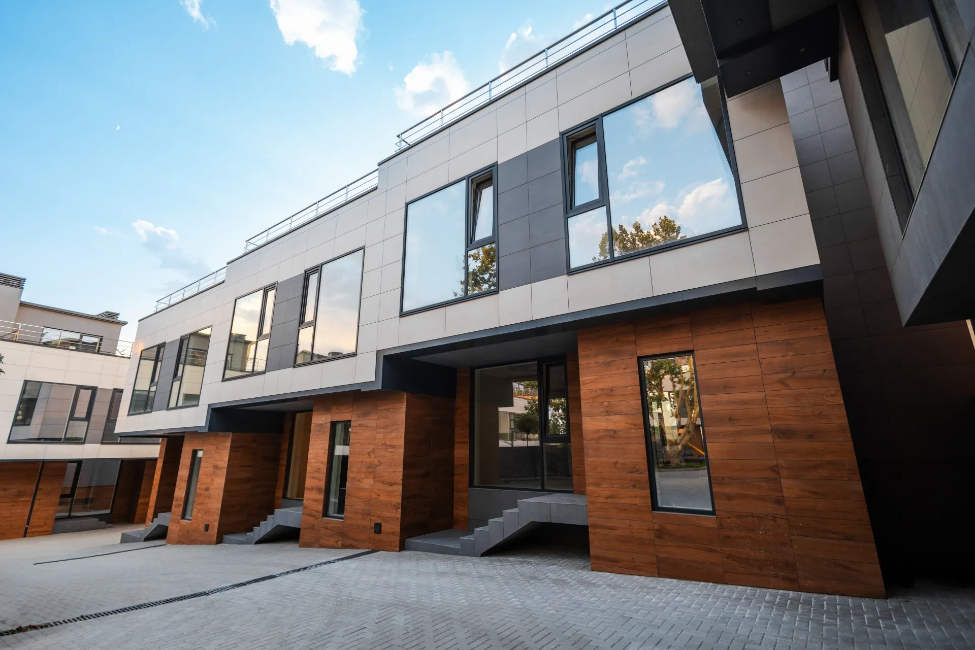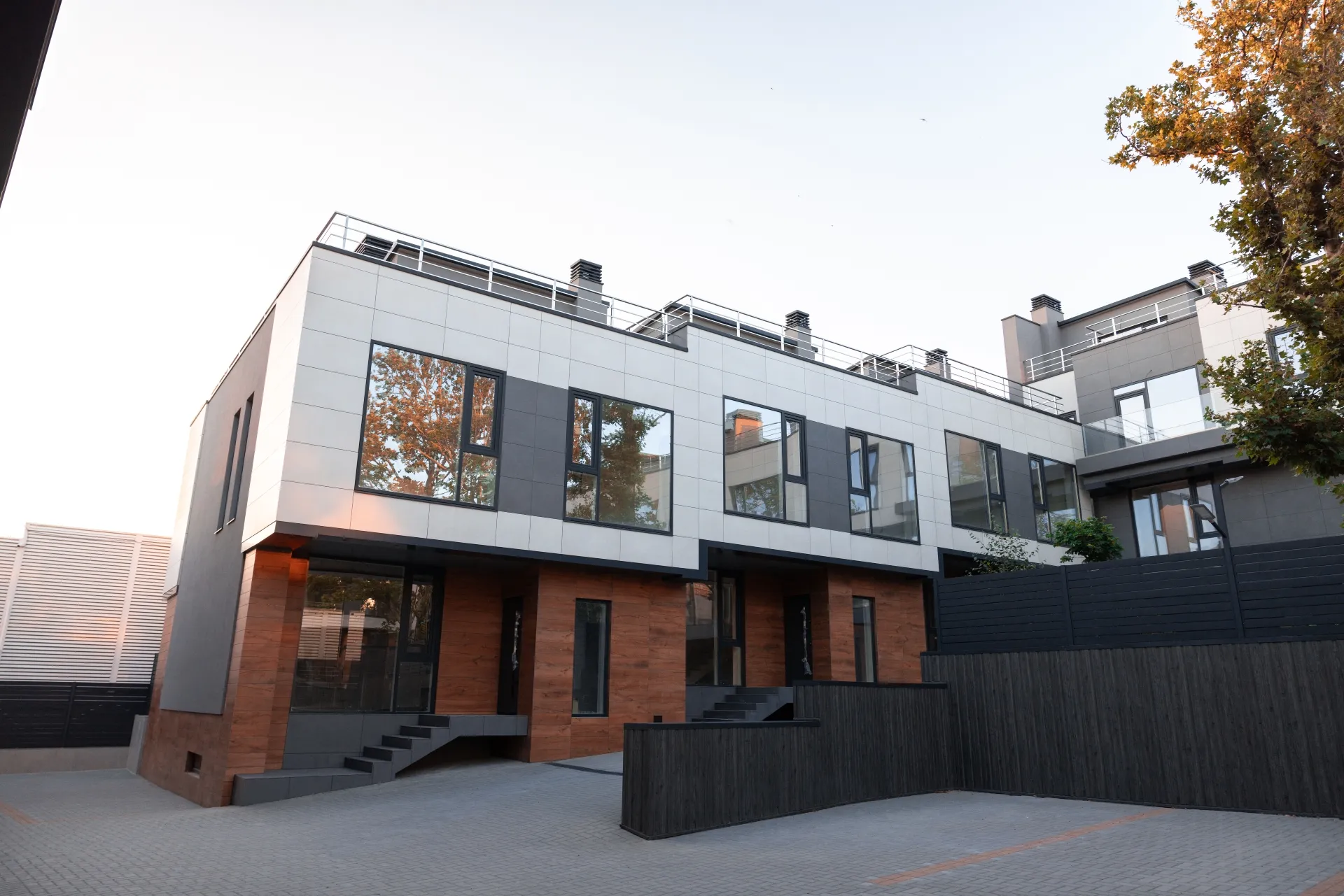 Fiecare townhouse dispune de terase private și două locuri de parcare pentru confortul rezidenților